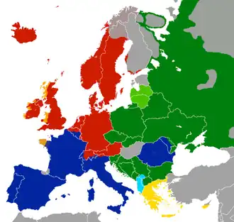 - w Europie – na przeważającym obszarze (z wyjątkiem terenów uralsko- i turkijskojęzycznych oraz nielicznych innych, mniejszych terytoriów[e]);