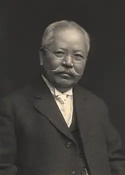 Urodził się w Takaoce w prefekturze Toyama jako syn lekarza. Jeszcze jako dziecko nauczył się angielskiego od holenderskiej rodziny w Nagasaki i do końca życia mówił po angielsku z niderlandzkim akcentem. Studiował w Osace, Kioto i Tokio. W 1879 został absolwentem Cesarskiego Uniwersytetu w Tokio.