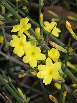 - Jasminum nudiflorum Lindl. – jaśmin nagokwiatowy