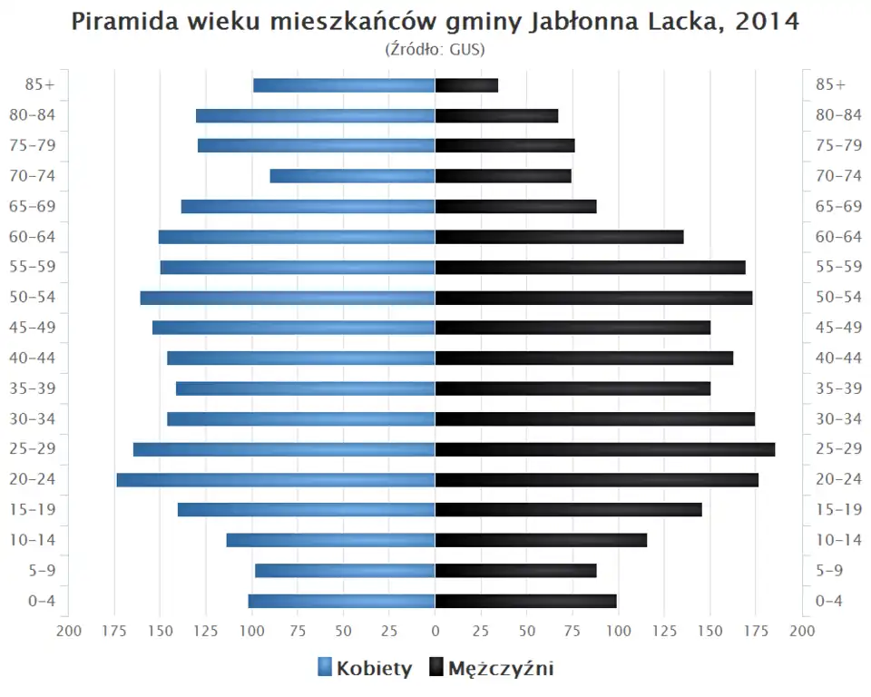 - Piramida wieku mieszkańców gminy Jabłonna Lacka w 2014 roku[7].