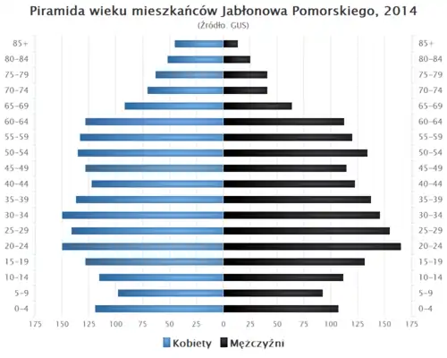 - Piramida wieku mieszkańców Jabłonowa Pomorskiego w 2014 roku[16].