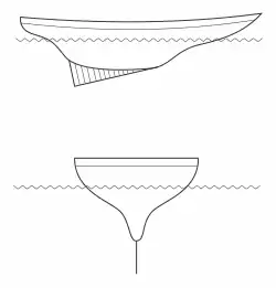 - ↑ Mechanizm powstawania momentu prostującego oraz rozkład sił na kadłubie podczas przechyłu zbliżony jest do występującego na jachcie mieczowym oraz balastowym i zależy od konstrukcji jednostki.