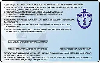 Jachtowy sternik morski – drugi z trzech patentów żeglarskich w Polsce.