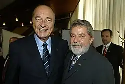 W 2003 prezydent Francji i kanclerz Niemiec Gerhard Schröder wyrazili zdecydowany sprzeciw wobec planowanej przez prezydenta USA George’a W. Busha inwazji na Irak. Postawa ta doprowadziła do znacznego ochłodzenia stosunków amerykańsko-europejskich. Jacques Chirac ostro też krytykował aspirujące do Unii Europejskiej państwa, które poparły działania USA (w tym m.in. Polskę)[21].