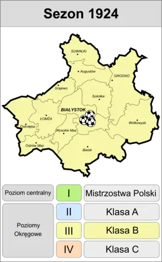 W roku 1924 do rozgrywek ligowych przystąpiły zespoły z województwa białostockiego. WKS 42 PP wygrał rozgrywki w klasie B i wraz z trzema innymi zespołami awansował do Wileńskiej klasy A.