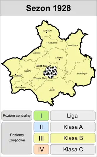 W roku 1928 oficjalnie Białystok i Grodno przystępują do rozgrywek w Warszawskim Okręgu. Tworzą się dwie klasy B, jedna grupa białostocka, a druga grodzieńska.