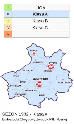 - ↑ Dane zebrane z notatek w Przeglądzie Sportowym, Dzienniku Białostockim, Nowe Echo Białostockie i Ostatnie Wiadomości Grodzieńskie z 1932r.