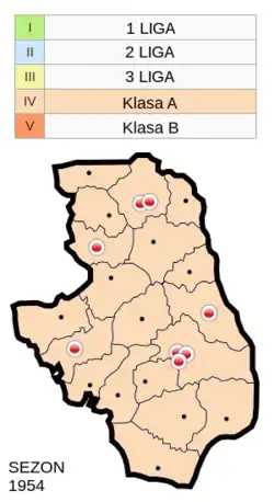 | 15.08.1954* Białystok | Klasa A - 10 kolejka(zaległy mecz) | - | D | Kolejarz Ełk | 0:4 | 5 | 15 | 24:26 | ||