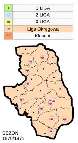 | 11 | Społem Bielsk Podlaski | 22 | 5 | 4 | 13 | 20 | 61 | -41 | 14 | Spadek kl.A |