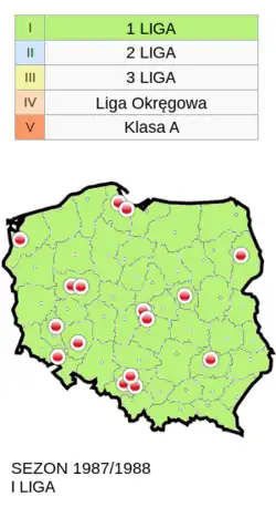 | 26.03.1988 Gdańsk | I liga – 18 kol. | 15000 | W | Lechia Gdańsk | 0:0 | 12 | 14 | 12:17 | ||