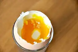 Dłuższe niż opisane gotowanie jajka powoduje ścięcie żółtka i powstanie jajka na twardo[1].