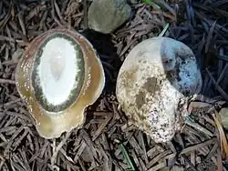 - 1 2 Wanda Rudnicka-Jezierska, Grzyby (Mycota). Tom XXIII. Podstawczaki (Basidiomycetes): purchawkowe (Lycoperdales), tęgoskórowe (Sclerodematales), pałeczkowe (Tulostomatales), gniazdnicowe (Nidulariales), sromotnikowe (Phallales), osiakowe (Podaxales), Kraków: Instytut Botaniki PAN, 1991, s. 133–135, ISBN 83-85444-01-7.