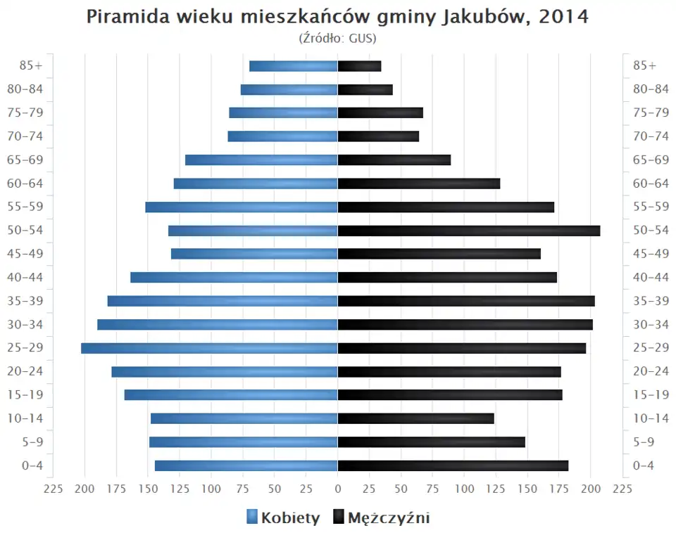 - Piramida wieku mieszkańców gminy Jakubów w 2014 roku[6].