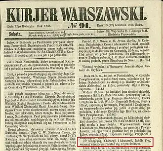 Zmarł 23 kwietnia 1865 w Warszawie. Został pochowany na cmentarzu Powązkowskim w Warszawie (kw. 6/II/10)[2] – pogrzeb z kościoła Św. Krzyża.