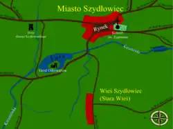 - ↑ Dawny gród znajdował się w miejscu obecnego zamku w Szydłowcu