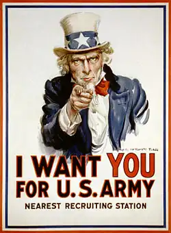 W czasie I wojny światowej stworzył na zlecenie rządu 46 plakatów, w tym słynny plakat z Wujem Samem wzywającym do wstępowania do armii (I want you for U.S. Army). Plakat ten był także używany w okresie II wojny światowej.