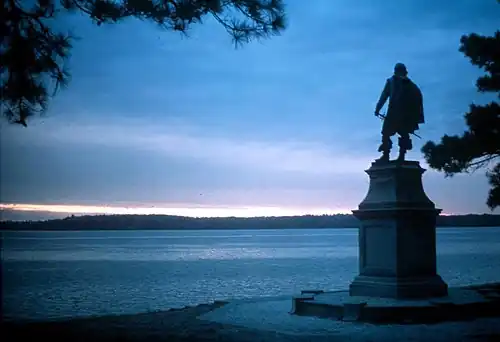26 kwietnia 1607 statki dotarły do obszernej zatoki Chesapeake, wpłynęły w nią i żeglowały w górę rzeki James przez 17 dni, dopóki nie znaleziono właściwego miejsca pod założenie osady (ponad 70 km od ujścia). Ku czci ówczesnego króla Anglii Jakuba I nazwano ją Jamestown.