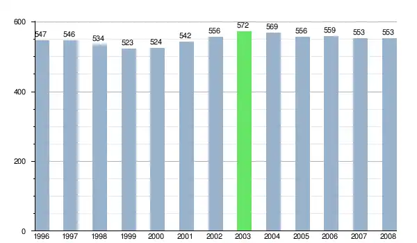 Zmiany liczby ludności w miejscowości Janík od 1996 roku[8].