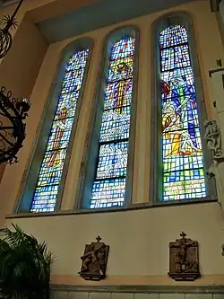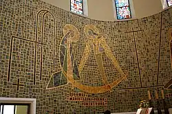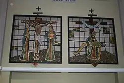 - projekt i realizacja mozaiki ceramicznej (na ścianie prezbiterium, na chórze, ambonie, na stacjach Drogi Krzyżowej),