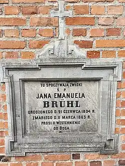 - ↑ Cmentarz Stare Powązki: Jan Emanuel Brühl, [w:] Warszawskie Zabytkowe Pomniki Nagrobne [dostęp 2021-05-07].