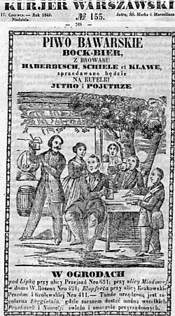 W roku 1846 Jan Henryk Klawe wraz z piwowarem Błażejem Haberbuschem kupują nieczynny browar licytowany przez bank za długi[3] i przybrawszy do spółki Konstantego Schiele uruchamiają produkcję nowego, na polskim rynku, gatunku piwa tzw. bawarskiego, a kilka miesięcy później również porteru. Nowa spółka z czasem wyrośnie na największy browar warszawski, jednak wtedy nie będzie już w niej Klawego.