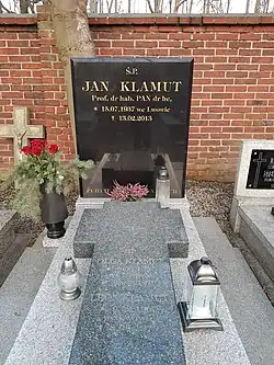 - ↑ Cmentarz św. Wawrzyńca (ul. Bujwida) – prof. Jan Klamut (p. 7, al. główna, gr. 062 (przy murze od strony Odry) [online], Uniwersytet Wrocławski [dostęp 2023-07-19] (pol.).