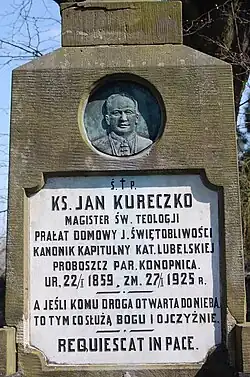 Jan Kureczko (ur. 22 stycznia 1859, zm. 27 stycznia 1925 r.) – polski duchowny katolicki, magister teologii, prałat pomocniczy biskupa lubelskiego, kanonik Kapituły Katedry Lubelskiej, prezes Rady Szkolnej Macierzy powiatu lubelskiego, założyciel Kasy Pomocy Obywatelskiej, propagator literatury w języku polskim, w latach 1892–1925 proboszcz parafii w Konopnicy. Staraniem ks. Kureczki wybudowano w 1906 roku neogotycki kościół w Konopnicy. Otwartą w 1914 r. nową szkołę w Konopnicy ks. Kureczko wspierał w podnoszeniu poziomu nauczania i wychowania. Dnia 12 kwietnia 1922 roku, za pozwoleniem Kurii Biskupiej Lubelskiej, dokonał poświęcenia nowej drewnianej świątyni w Motyczu. Pochowany na cmentarzu w Konopnicy.