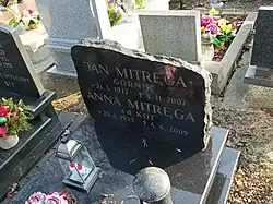 W 2007 obchodzono jubileusz 90. lat Jana Mitręgi, otrzymał on z rąk prezydenta Siemianowic Śląskich Jacka Guzego przyznany mu przez Radę Miasta tytuł Honorowego Obywatela Siemianowic Śląskich. 7 listopada 2007 źle się poczuł i trafił do szpitala, gdzie zmarł następnego dnia w godzinach porannych; przyczyną śmierci był wylew. 14 listopada 2007 został pochowany na cmentarzu przy ul. Francuskiej w Katowicach.