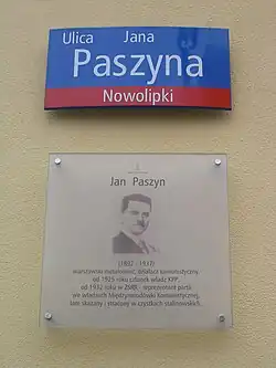 - W latach 1964–2014 na warszawskiej Woli istniała ulica Jana Paszyna[2]. Nazwa została zmieniona w 2014 na ul. Glinianą[3].
