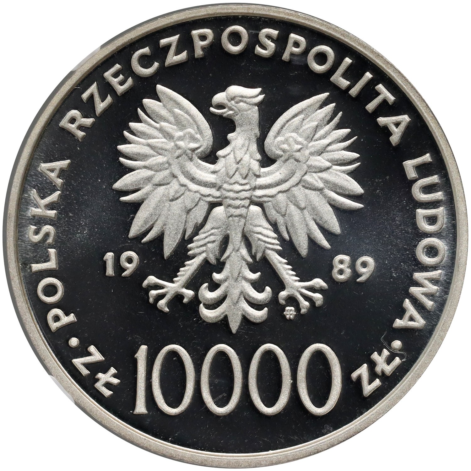 - 10 000 złotych 1989 (stempel lustrzany, srebro) awers,rewers