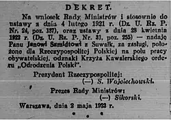 - ↑ Order Odrodzenia Polski : trzechsetlecie pierwszej kapituły 1921-1924, Warszawa 1926, s. 37.