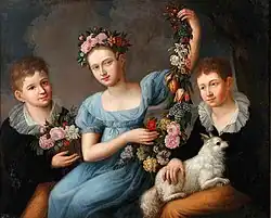 - ↑ Przed 1939 rokiem wymienione rodzinne obrazy olejne i miniatury na kości słoniowej znajdowały się w posiadaniu rodziny Kopffów, PSB ↓, s. 17.