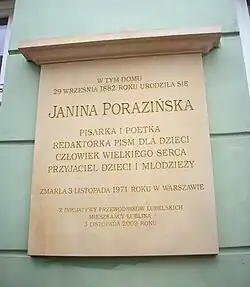 - ↑ Cmentarz Stare Powązki: JANINA PORAZIŃSKA, [w:] Warszawskie Zabytkowe Pomniki Nagrobne [dostęp 2019-12-19].