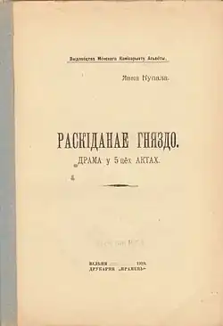 Na wrzesień 1913 roku datowany jest najwybitniejszy utwór w przedrewolucyjnej twórczości Kupały – dramat Raskidanaje hniazdo (Rozrzucone gniazdo). Na przykładzie wiejskiej rodziny, która traci cały swój dobytek ukazana jest tragedia narodu białoruskiego. Sztuka została pokazana na scenie dopiero po rewolucji 1917 roku, a wydrukowana jeszcze później – w 1919 roku w Wilnie.