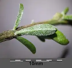 - Skrętoległe, całobrzegie, podłużnie odwrotnie jajowate, na spodniej stronie owłosione.