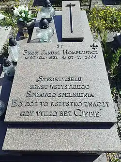 - ↑ Late Janusz Homplewicz b. 1931-04-27 + 2006-11-07 Cmentarz komunalny Wilkowyja w Rzeszowie Grave location: 82-7-18. grobonet.erzeszow.pl. [dostęp 2020-02-24].
