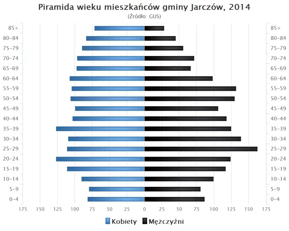 - Piramida wieku mieszkańców gminy Jarczów w 2014 roku[7].