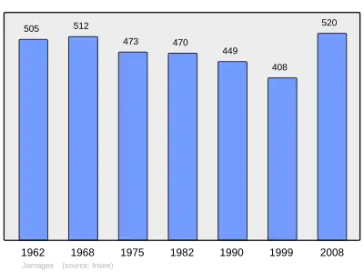Według danych na rok 1990 gminę zamieszkiwało 449 osób, a gęstość zaludnienia wynosiła 49 osób/km² (wśród 747 gmin Limousin Jarnages plasuje się na 272. miejscu pod względem liczby ludności, natomiast pod względem powierzchni na miejscu 573.).