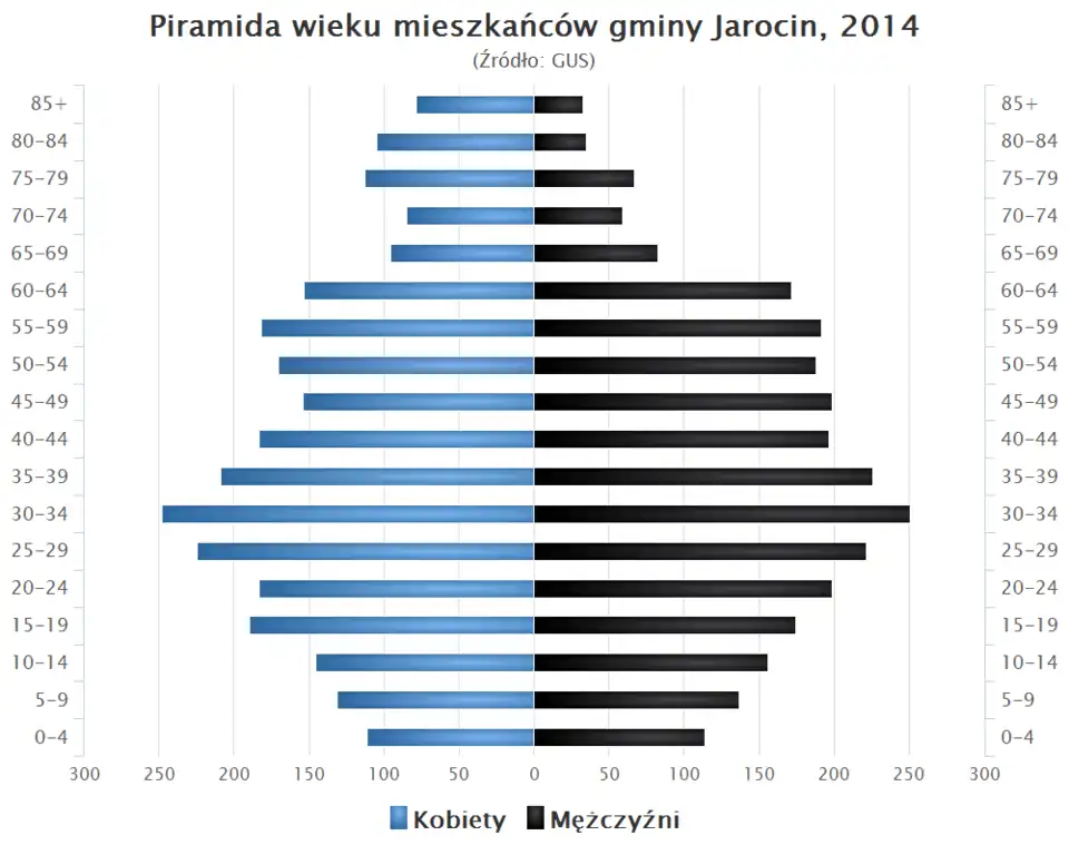 - Piramida wieku mieszkańców gminy Jarocin w 2014 roku[5].