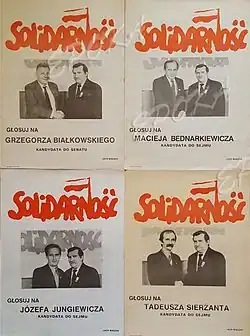 Od kwietnia do czerwca 1989 współpracował z Biurem Wyborczym Komitetu Obywatelskiego „Solidarność”[13] i na zlecenie jego sekretarza Henryka Wujca wraz z fotografem Erazmem Ciołkiem wykonali, według pomysłu Andrzeja Wajdy i pod jego nadzorem, dwie sesje zdjęciowe w Gdańsku i w Warszawie z udziałem Lecha Wałęsy i z większością solidarnościowo-opozycyjnych kandydatów na parlamentarzystów do plakatów wyborczych w wyborach 4 czerwca 1989 (przy sesjach tych również współpracowali fotografowie: 29.04.1989 w Gdańsku – Jerzy Kośnik, 11.05.1989 w Warszawie – Darosław Maciej Laprus)[14][15][16].