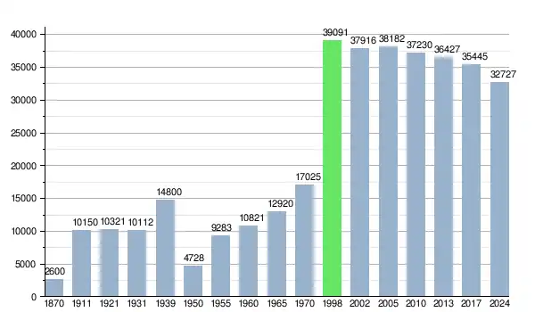 Według danych GUS największą populację Jasło odnotowało 30 czerwca 1998 - 39 091 mieszkańców[25].