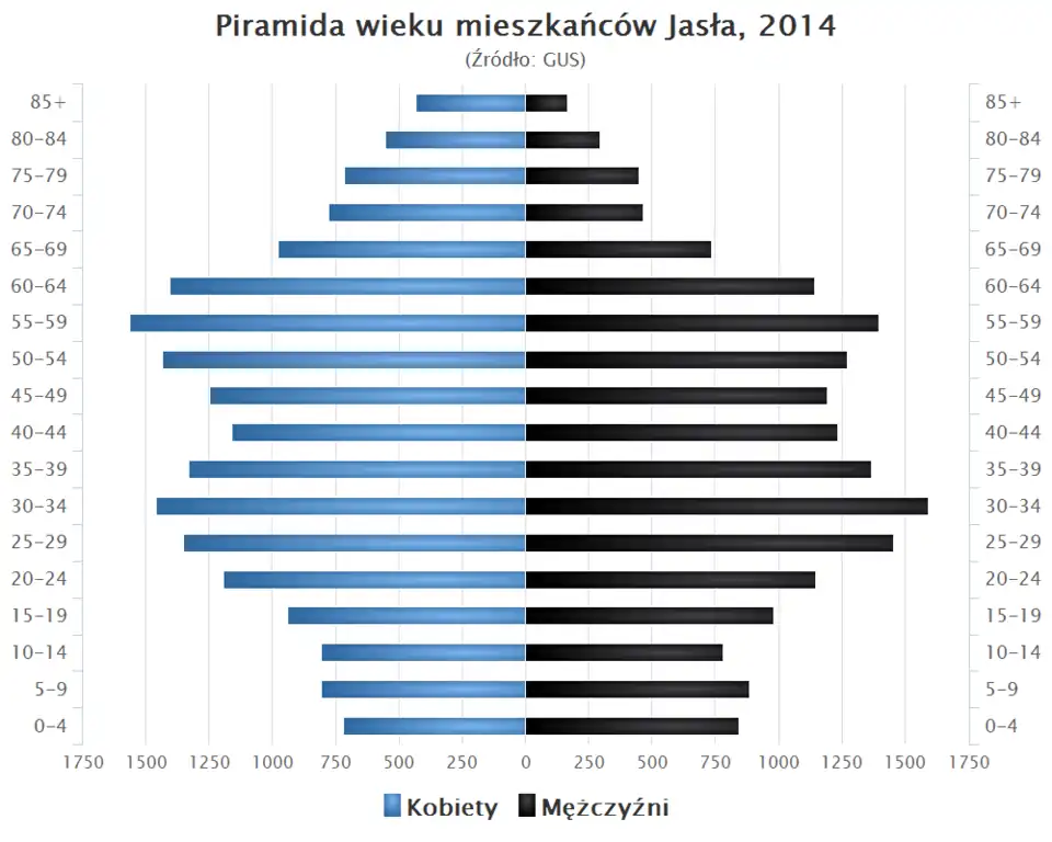 - Piramida wieku mieszkańców Jasła w 2014 roku[26].