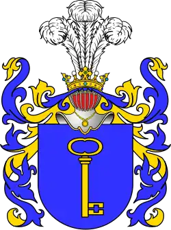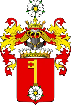 - ↑ Tadeusz Gajl: Herbarz polski od średniowiecza do XX wieku : ponad 4500 herbów szlacheckich 37 tysięcy nazwisk 55 tysięcy rodów. L&L, 2007. ISBN 978-83-60597-10-1.