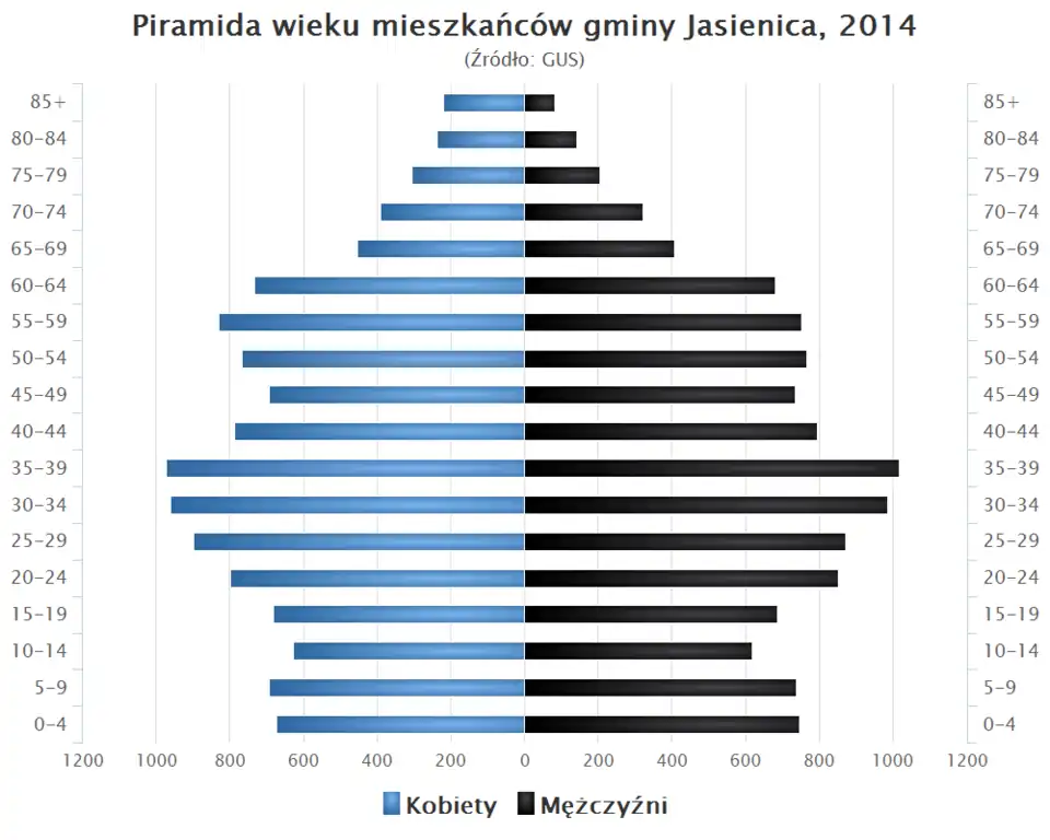 - Piramida wieku mieszkańców gminy Jasienica w 2014 roku[3].