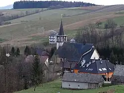 - Kościół drewniany pw. Najśw. Imienia NMP.