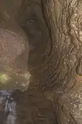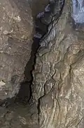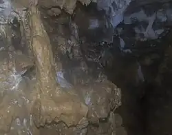 Początkowo ciasny i kręty korytarz po 10 m poszerza się i zaczyna opadać w dół. Strop jaskini pozostaje mniej więcej na tym samym, poziomie, wskutek czego wysokość korytarza w końcowym odcinku dochodzi do 7–8 m. Kończy się komorą o długości 10 m i szerokości 5 m[1].