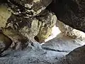 Składa się z niskiej komory o długości 12 m oraz niewielkich jej odgałęzień. Ma trzy otwory wlotowe na wysokości 220 m n.p.m. na południowej ścianie w nieuławiconych wapieniach. Łączna długość wszystkich korytarzy wynosi 25 m. Szerszy wylot jaskini wsparty jest trzema kolumnami skalnymi. Do wnętrza jaskini dociera światło. Klimat nie jest stały, lecz podlega atmosferycznym wpływom. Jaskinia nie posiada nacieków, natomiast na jej dnie znajduje się namulisko, ale jego większość została usunięta przez archeologów, którzy dwukrotnie je przekopywali[3].