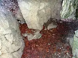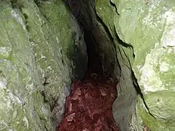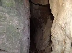 U podstawy komina jest opadająca szczelina do dolnego piętra jaskini. Na jej dnie jaskinia osiąga największą głębokość[1].