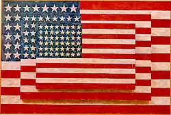 - Seria Flag, powstająca w latach 1955-1960, zamknięta brązowym odlewem namalowanej na płótnie flagi. Centralnym zagadnieniem tego cyklu, jak i twórczości Johnsa w ogóle, jest problem tożsamości znaku, wyrażający się w często powtarzanym pytaniu: „Czy to jest obraz, czy flaga?”