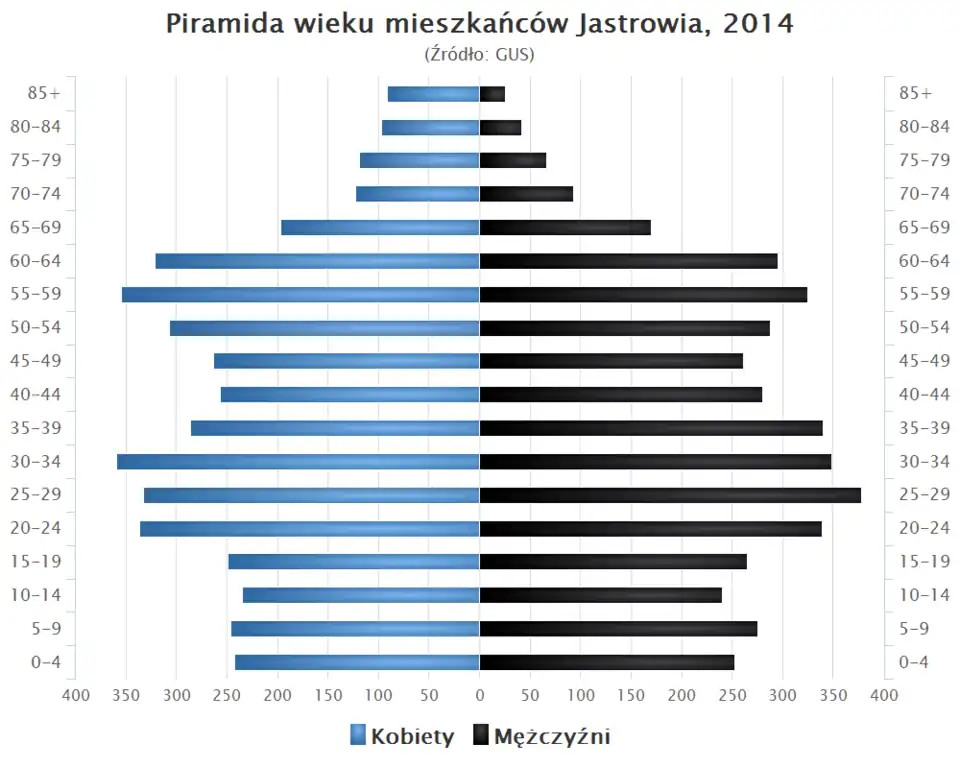 - Piramida wieku mieszkańców Jastrowia w 2014 roku[1].